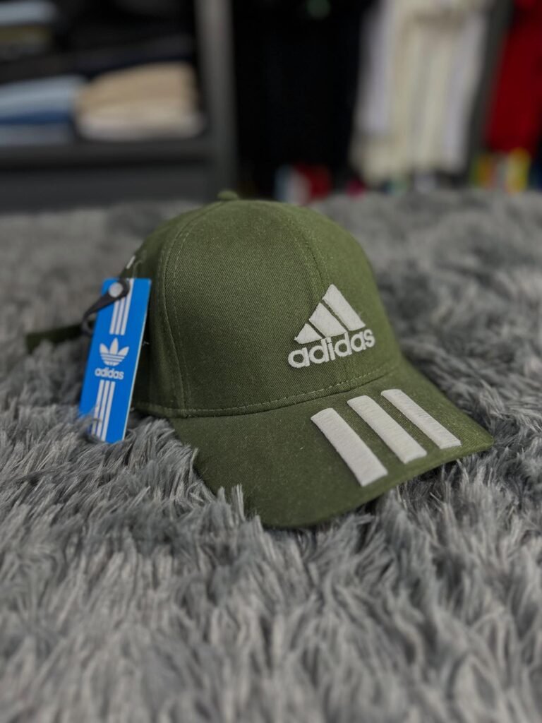 Boné Adidas 3-Stripes Baseball verde militar; clássico esportivo com identidade forte e acabamento premium.